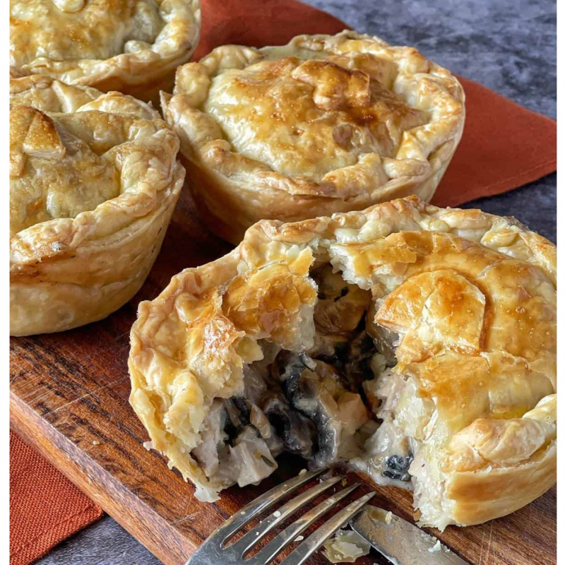 Indulge in the creamy decadence of our Chicken & Mushroom Pie, made with succulent free-range chicken from local farms and earthy mushrooms foraged nearby. The velvety sauce binds the ingredients in a golden shortcrust shell, offering a balanced blend of savory notes that's both elegant and satisfying. Fresh herbs add a subtle brightness, elevating this classic to gourmet status. Our dedication to quality shines through in every layer, with no preservatives or fillers—just pure, traceable ingredients processed in our artisanal setups. The chicken's natural juiciness pairs perfectly with the mushrooms' umami, creating a pie that's ideal for cozy meals or entertaining. Reheat it for a quick dinner or serve fresh from the oven; either way, it's a testament to the superior taste of locally sourced poultry and produce.