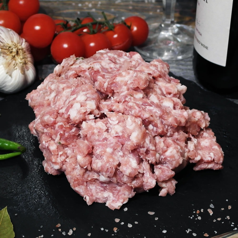 Our Pork Mince is a versatile staple made from high-quality, locally reared pigs known for their superior marbling and flavor. Ground fresh daily in our artisanal butcher shops, it offers a coarse texture that's perfect for homemade burgers, meatballs, or hearty Bolognese sauces. The natural juiciness comes from animals fed on a balanced, natural diet, ensuring every bite is packed with authentic pork goodness without any fillers or extenders.